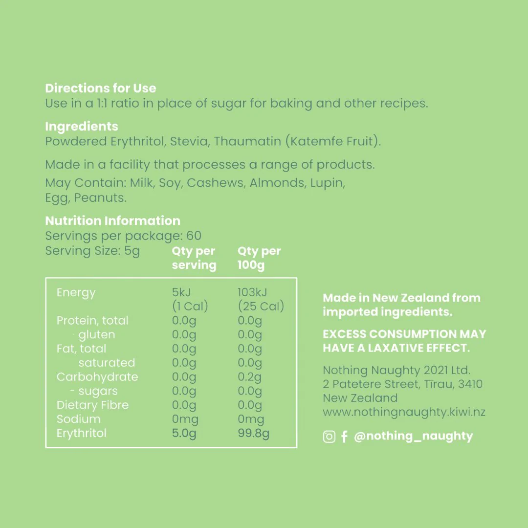 Looking for a sugar substitute that keeps it clean, natural, and low-carb? Nothing Naughty Keto Sweetener blends erythritol, stevia, and katemfe fruit extract (thaumatin) to give you the perfect keto-approved sweet fix.
