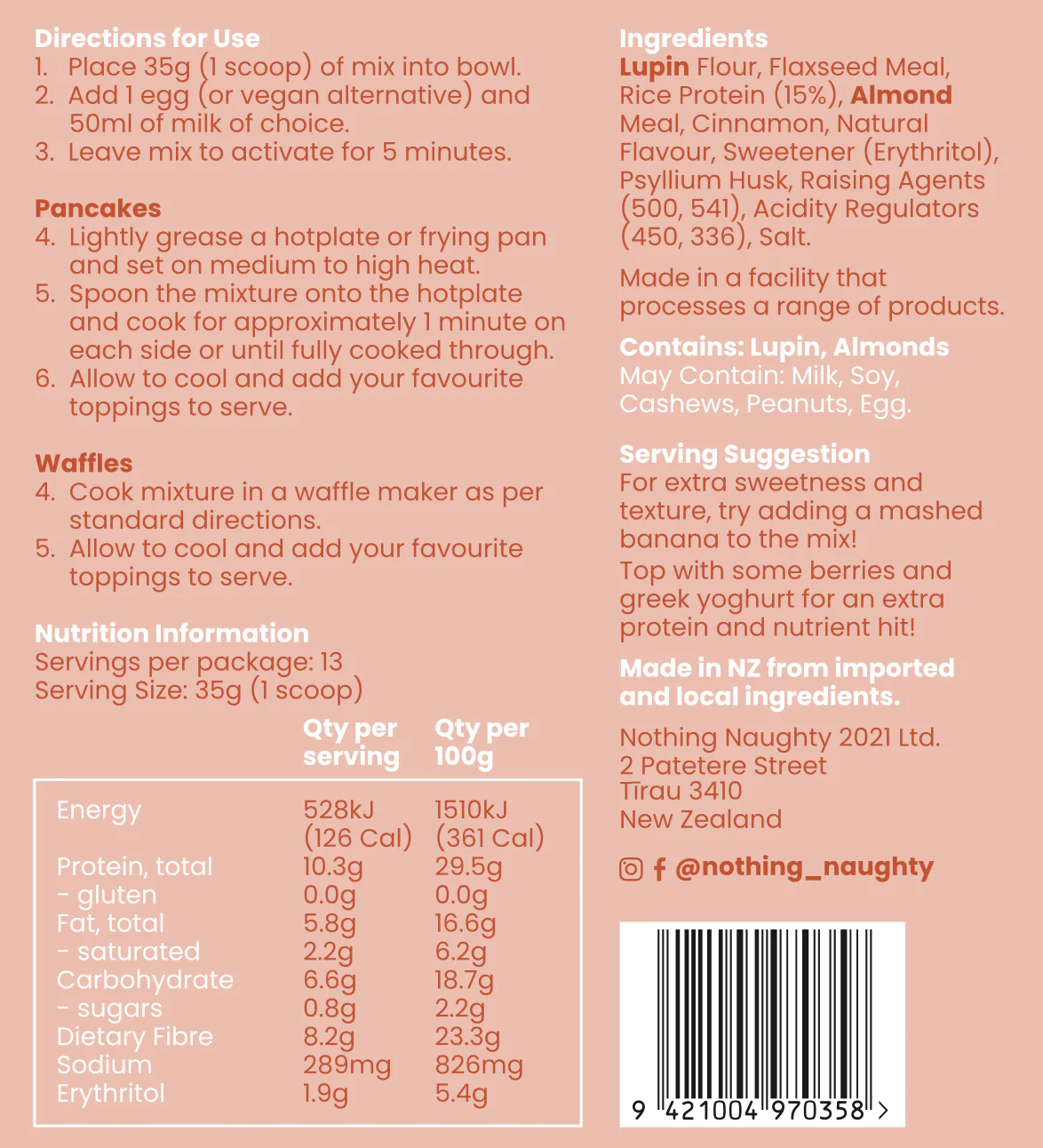 Allergens: Contains lupin & tree nuts (almond meal). May contain dairy.