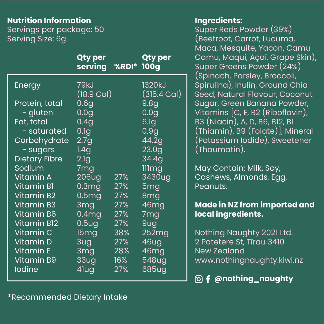 Nothing Naughty Super Greens & Reds is a Supplemented Food.